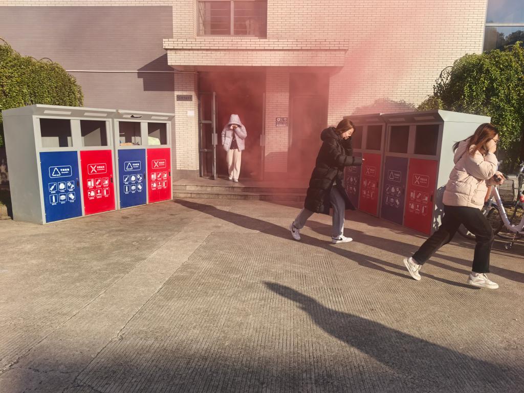 应急演练模拟宿舍区突发火灾场景。活动开始后,宿舍区域冒出浓烟,工作人员接到火情报告后立即启动应急响应机制,现场消防警报迅速响起。在工作人员的指挥下,宿舍内同学们迅速反应,以湿毛巾捂住口鼻、弯腰贴墙的正确姿势,沿疏散指示灯指示的安全路线快速撤离。撤离过程中,工作人员全程引导,提醒大家保持安全间距、避免拥挤踩踏,确保所有参与人员安全、有序抵达指定空旷广场集合点,整个疏散过程紧张有序、高效规范。