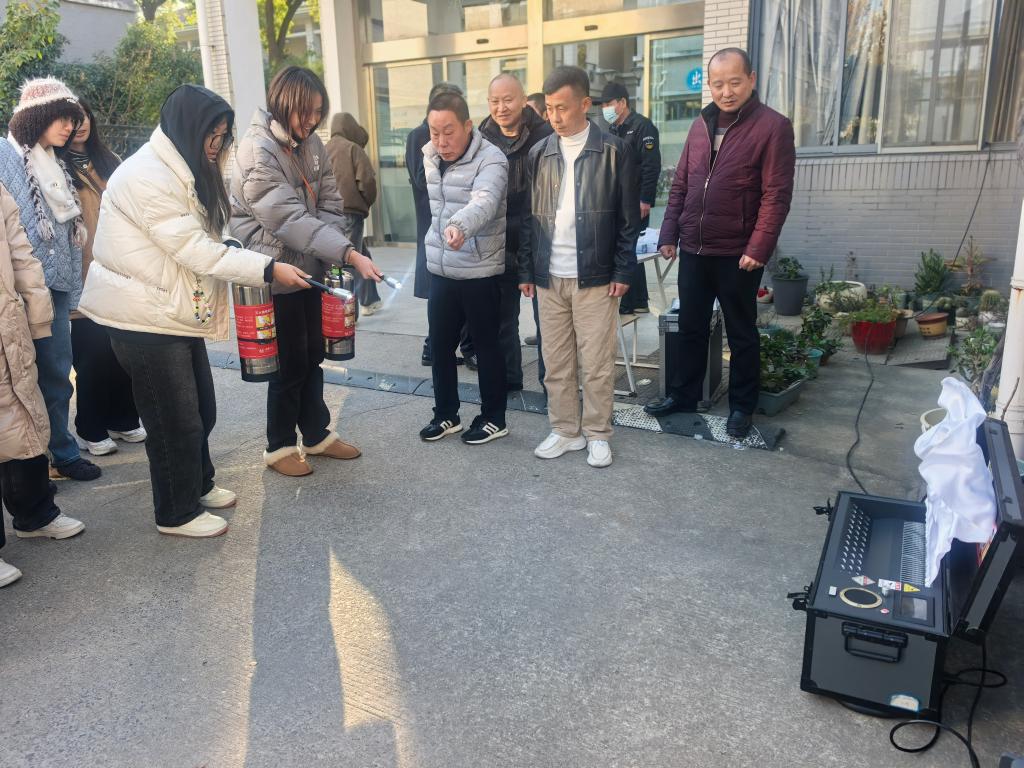 本次演练活动还设置了消防灭火技能实操环节。在专业人员的指导下,大家严格按照“提、拔、握、压”四步法,依次进行灭火器使用实操训练。参训人员认真投入,动作规范,逐一完成演练任务,进一步掌握了初起火灾的扑救要领。