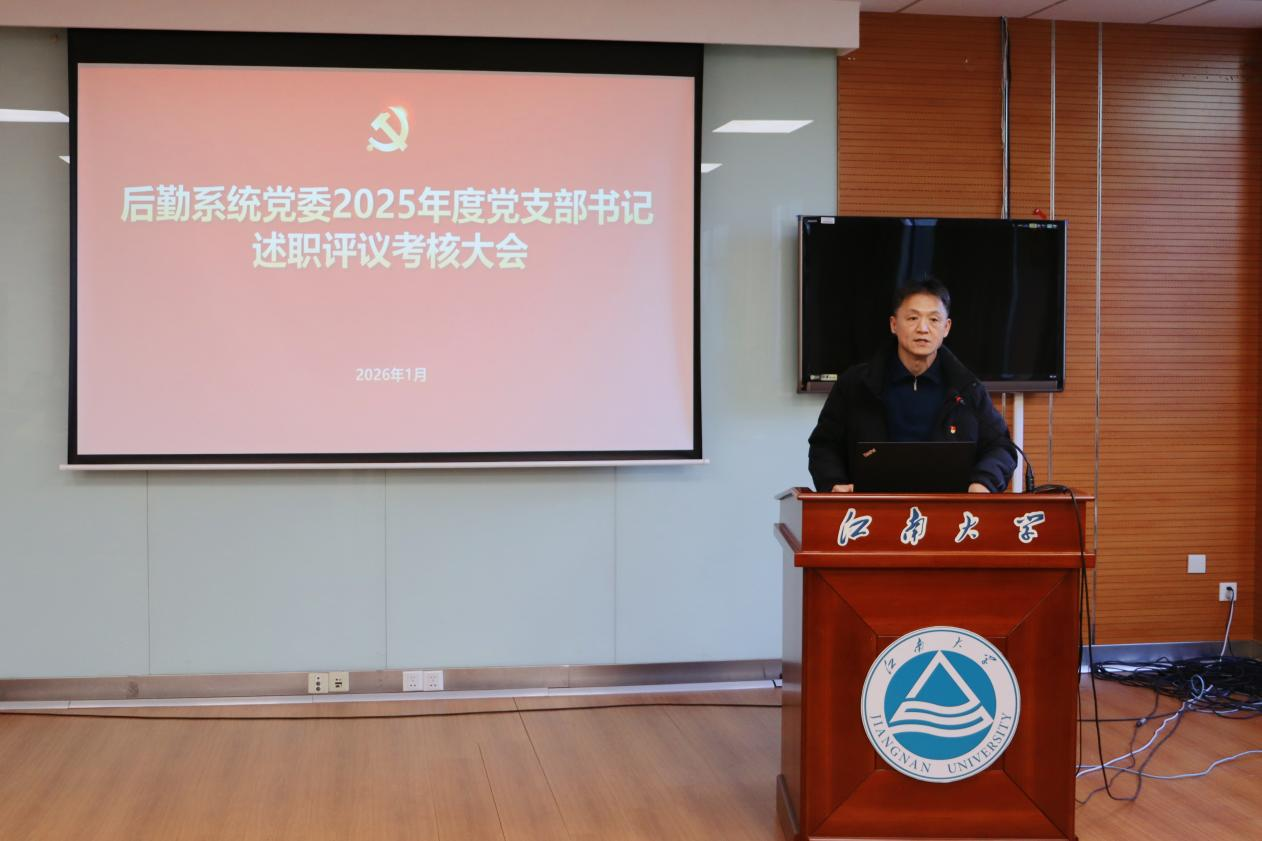 为深入学习贯彻习近平新时代中国特色社会主义思想和党的二十届四中全会精神,夯实基层党组织战斗堡垒作用,1月7日,后勤系统党委于文浩馆311会议室召开2025年度党支部书记述职评议考核大会。后勤系统党委委员、全体中层干部、各党支部委员和党员代表参加会议,会议由后勤系统党委书记朱新伟主持。