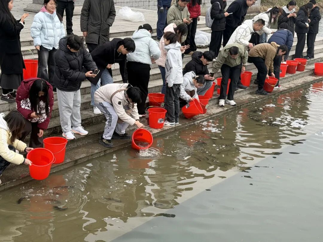 随着一尾尾活泼的小鱼儿摆动着尾巴,倏然游入一池碧波之中,水面上漾开的圈圈涟漪为春日的校园增添了无限灵动与生机。参与活动的师生们脸上洋溢着欣喜与满足,大家不仅体验到了劳动的快乐,更感受到了维护生态平衡的使命感。